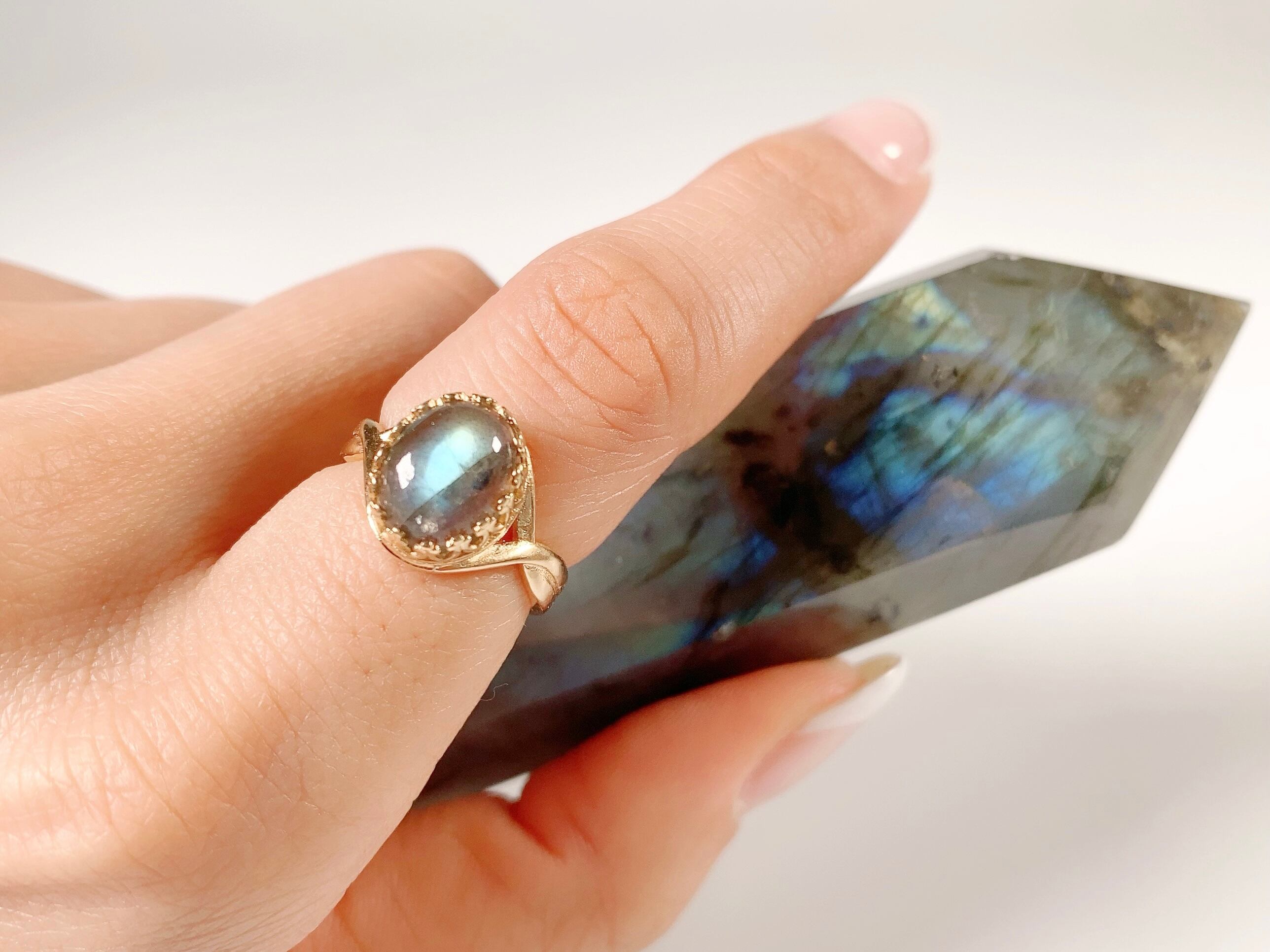 【素材】宝石質ラブラドライト、ヴェルメイユゴールドリング