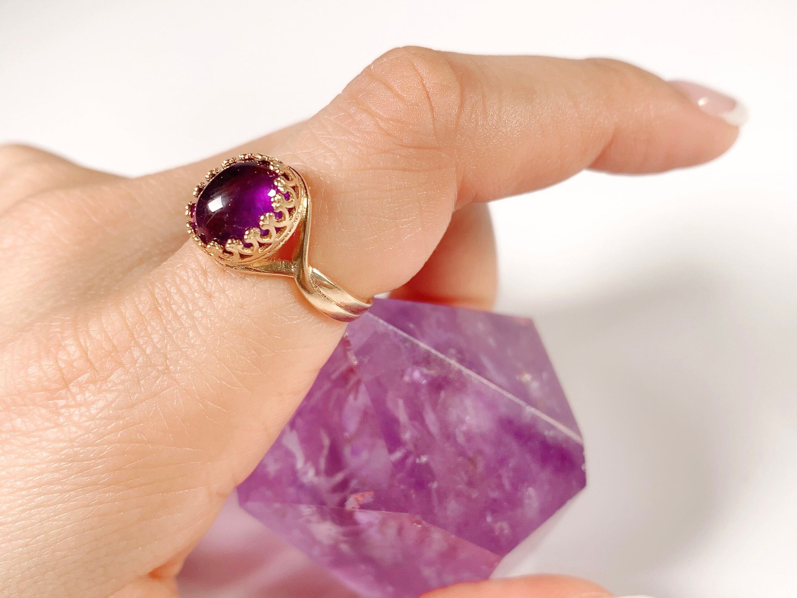 【素材】宝石質アメジスト、ヴェルメイユゴールドリング