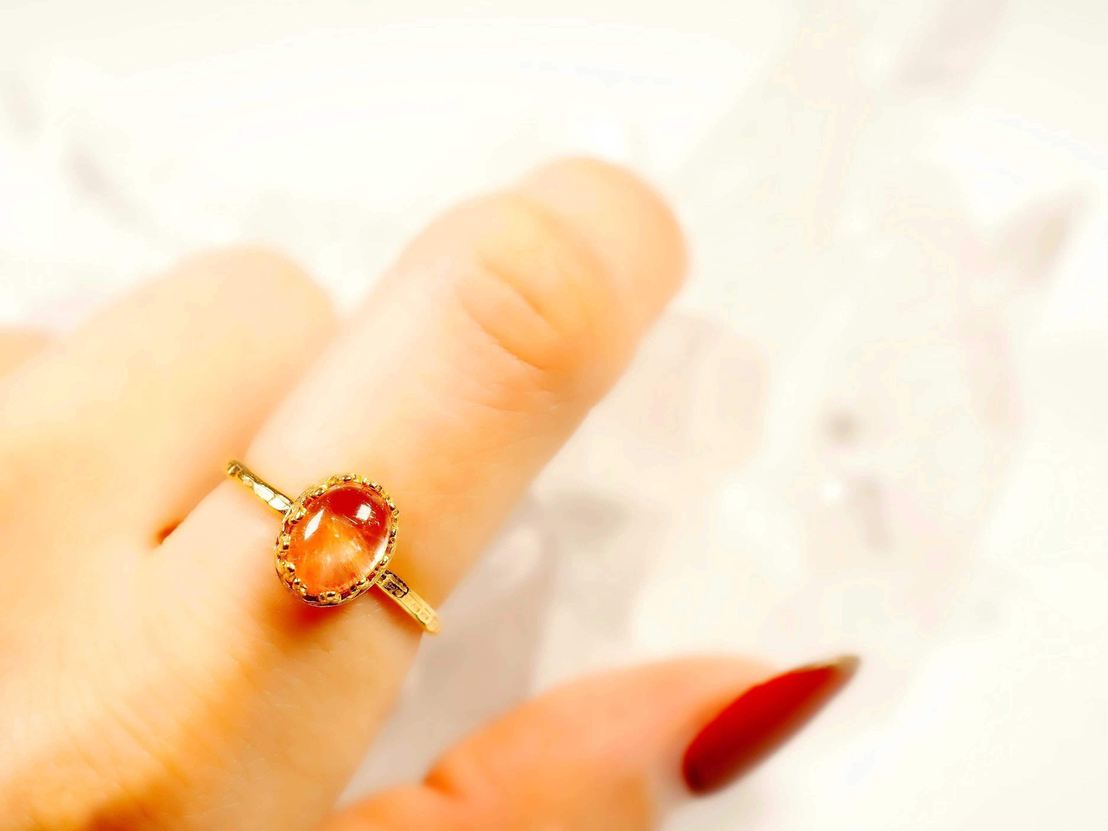 【素材】ストロベリークォーツ、ヴェルメイユゴールドリング