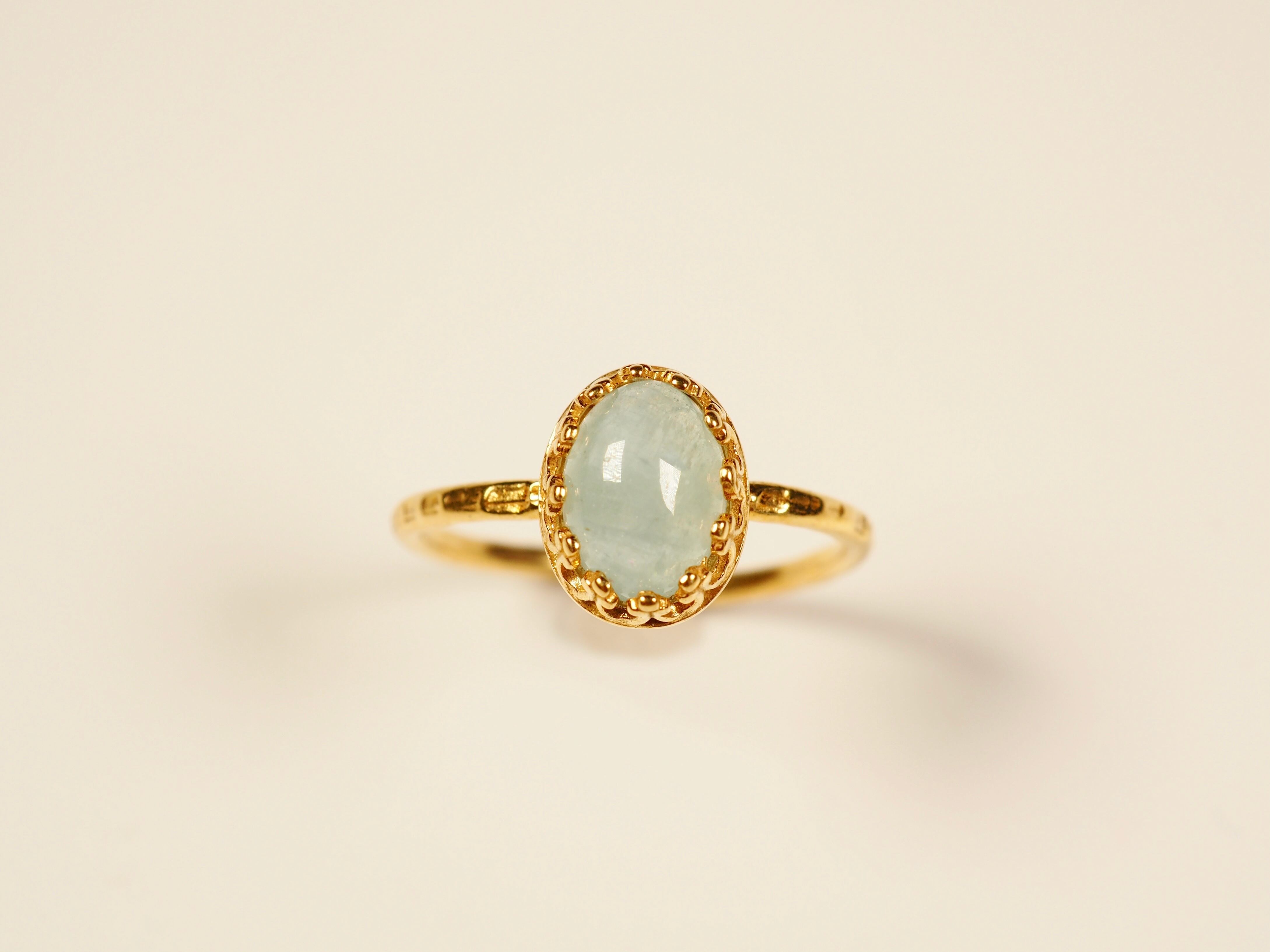 【素材】ナミビア産アクアマリン、ヴェルメイユゴールドリング